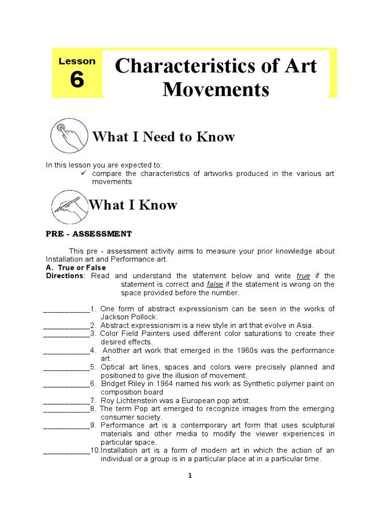 Arts 10 Module 2 Characteristics Of Arts From The Various Art Movements Grade 10 Modules